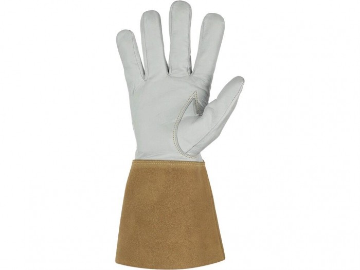skórzane rękawice spawalnicze bez podszewki, zszyte niciami z kevlaru. Zalecane zastosowanie: branża metalurgiczna, spawalnicza, budowa maszyn a przemysł ciężki.
