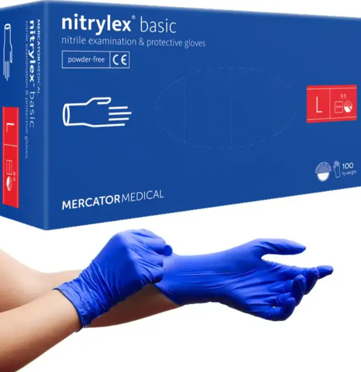 Rękawiczki nitrylowe Mercator Nitrylex Basic bezpudrowe (100 szt. op.), niebieskie