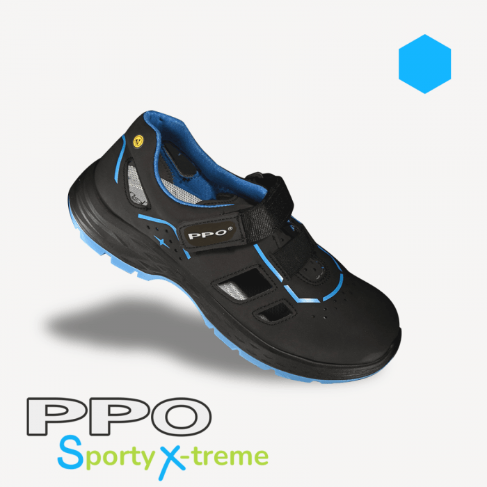 Sandały bezpieczne z podnoskiem z włókna szklanego i niemetalową wkładką antyprzebiciową PN-EN ISO 20345, S1, P, SRC, ESD
