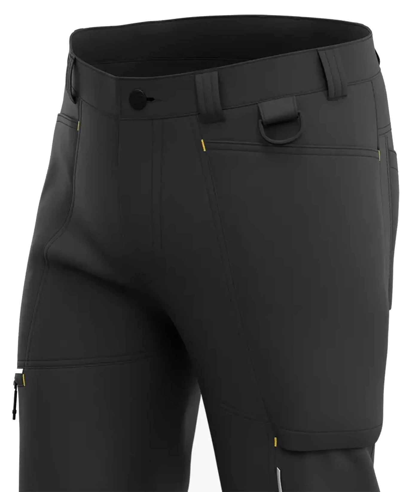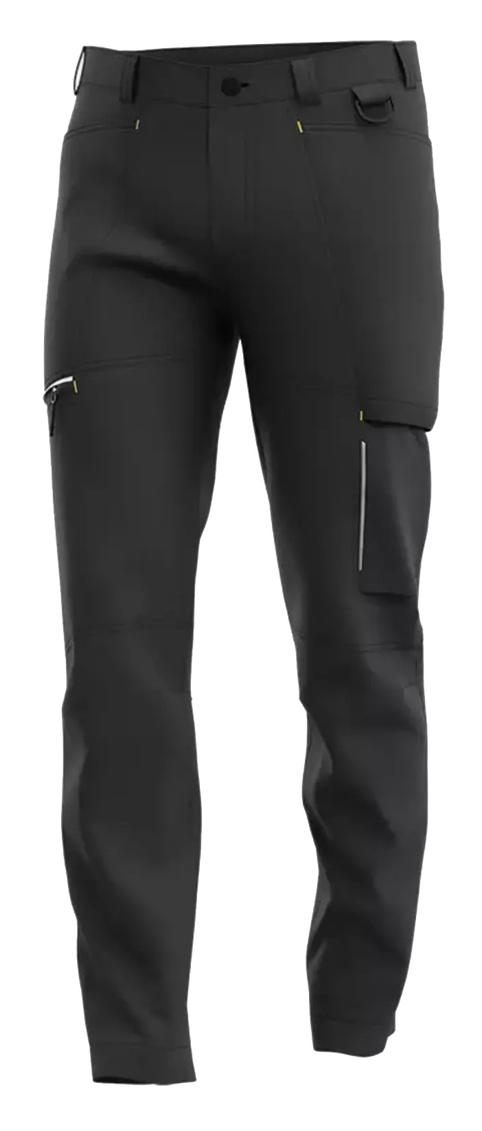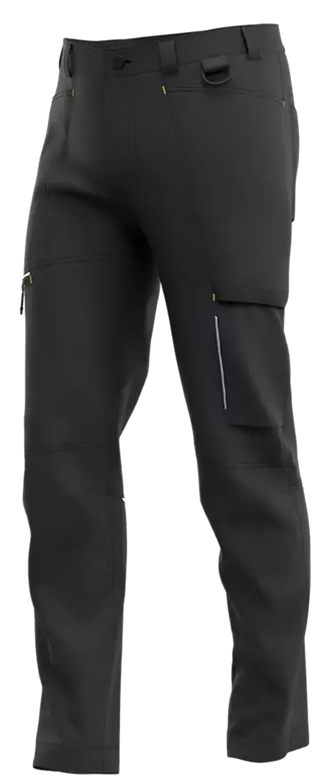 Spodnie Deneb posiadają wiele strategicznie rozmieszczonych kieszeni, w tym 2 z przodu, 2 z tyłu, 2 na udach oraz D-ring, umożliwiający bezpieczne przypięcie identyfikatora lub kluczy. Odblaskowe detale zwiększają widoczność w trudnych warunkach, co podnosi poziom bezpieczeństwa.